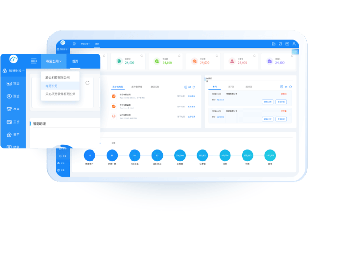 02 多企業一站式管理 建立以集團為核心的多企業賬套管理,企業之間可快速切換,輕松掌管企業經營情況。